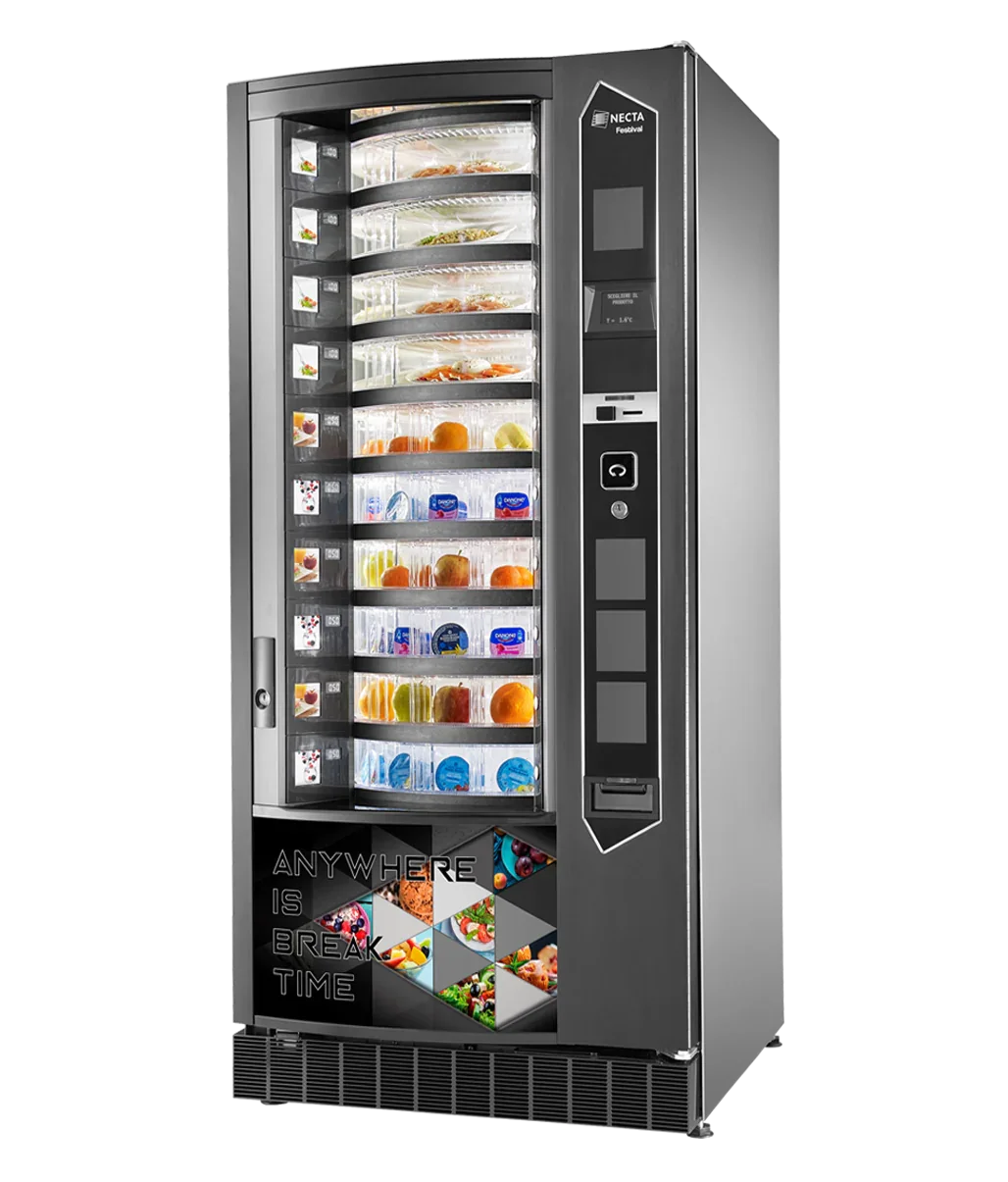 The extreme flexibility of configuration allows the user to choose from snacks, drinks, fresh dishes, fruit and yoghurt for locations needing to offer catering services 24/7.